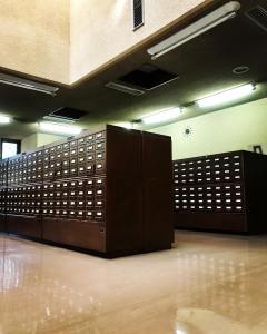 私が通っていた頃は、それこそもう何十年も時間が止まっているような静逸な空間だったのだけれど、今は館内にCafe文壇なるスペースができて、オサレな若者が集っているとかいないとか。閲覧室には資料の目録を納めた黒光りする立派な棚が、今でも堂々と並んでいる。これらの棚の引き出しから目録カードを繰り出しては資料を探していた頃が恐ろしいほど昔であったことのようで、目眩のするような思いがする。